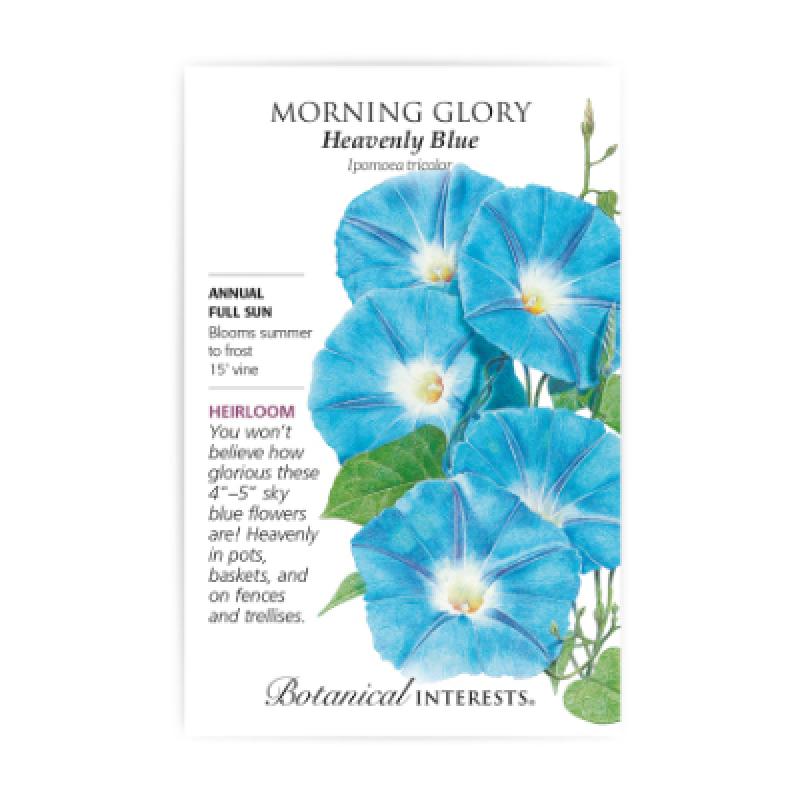This showy climber will bedazzle all who are lucky enough to behold it! Morning glory is so named because the flowers open in the cool of morning, then close when it gets too hot. On cloudy days, and in the fall, the blossoms stay open all day.