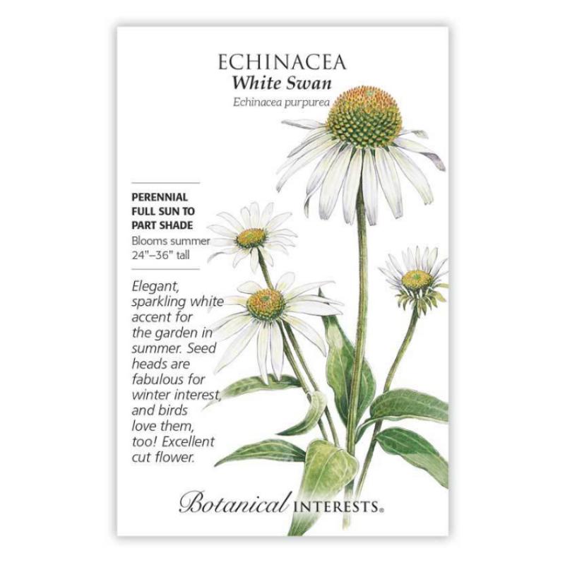 'White Swan' is the perfect name for this graceful echinacea, a natural selection from white-flowered variations of the native, purple echinacea. Its flowers attract butterflies and other pollinators, while birds enjoy the seeds.