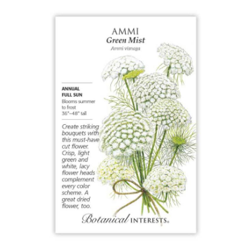 A fabulous flower for mixed bouquets, the large, rounded umbels of 'Green Mist' start out a bold green, turning to white as the tiny flowers open. Also known as bishop's flower or false Queen Anne's lace.