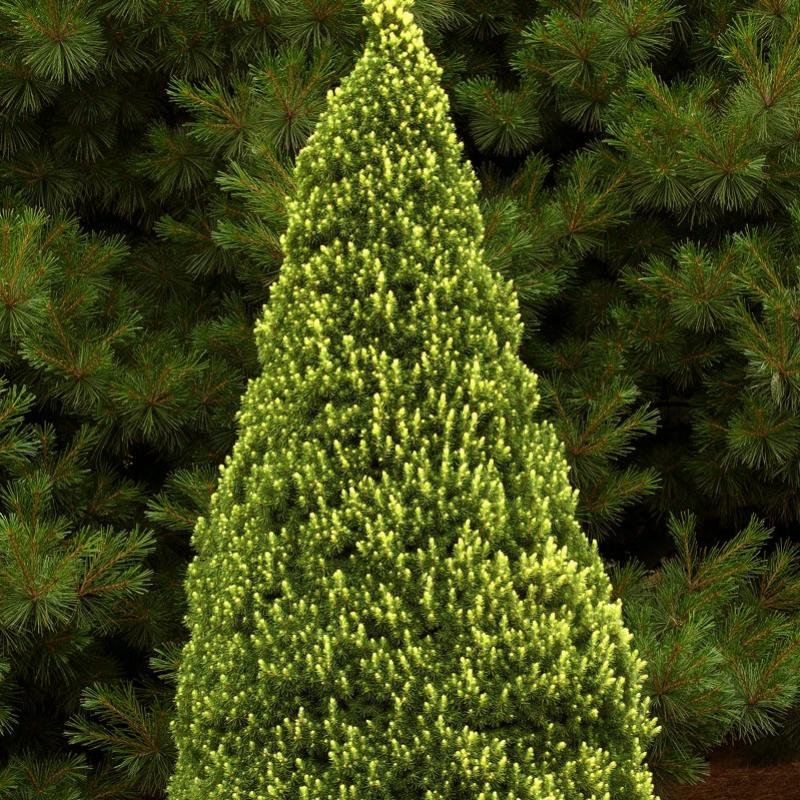 A narrow, upright dwarf conifer that is similar to Dwarf Alberta Spruce, the interesting new growth of this selection is light green but has a second flush which is bright creamy-yellow.