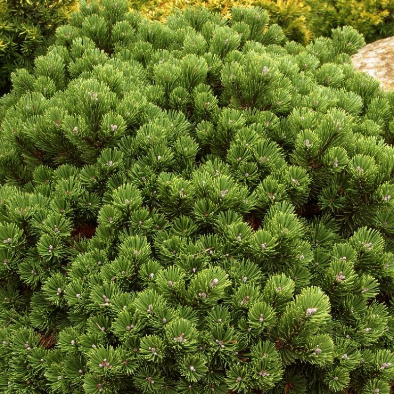 Compact and tidy with a rich green color throughout the year, this variety features short, stiff branches that are heavily clothed in slightly twisted needles whorled around the terminal buds.