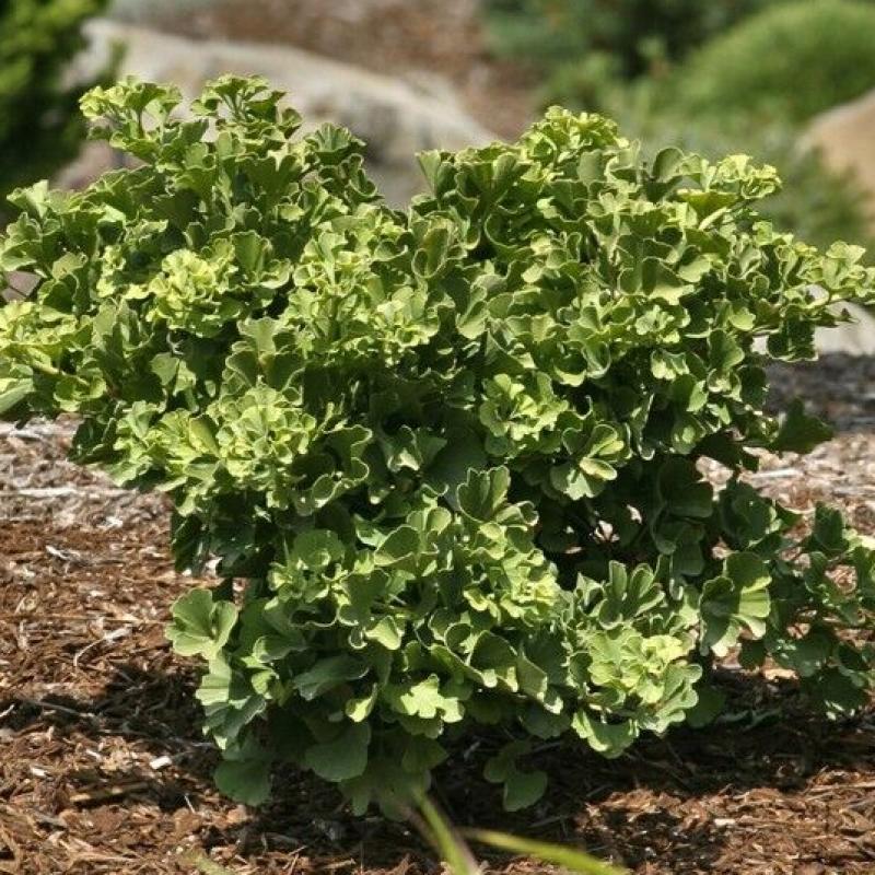'Mariken' is a compact bushy selection that is wider than tall and features the same charming fan-shaped leaves as the species, but placed closely together on thick spreading branches. Fall brings a buttery golden fall color.