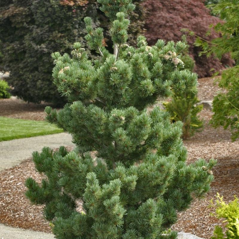 Silvery blue on one side, green on the other, the long-enduring, straight needles of this specimen plant give the naturally sculpted, upright tree a lush look. Sturdy branches display attractive silver-gray bark and loads of small, black-brown cones.