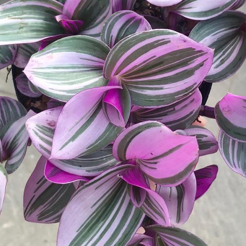 This fast growing Tradescantia will create interest with its green, white and pink striped foliage. This plant will thrive in an area with bright indirect light. If not enough sunlight is given, you will see this plant become leggy and/or lose coloration.