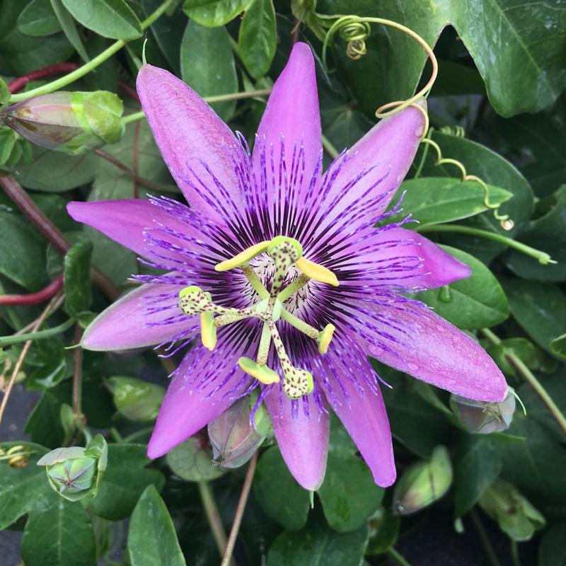 An exotic climber with mesmerizing purple blooms and intricate floral structure. ‘Amethyst’ adds tropical drama to trellises and containers, while attracting pollinators with its striking flowers.