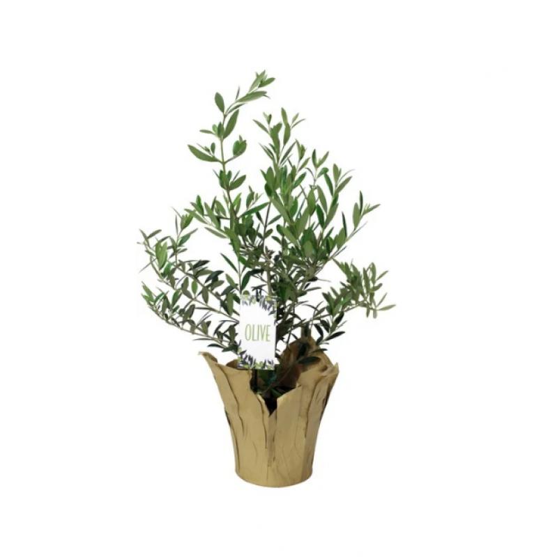 A Mediterranean evergreen with narrow, silvery-green leaves and smooth gray bark. When grown indoors, this slow-growing tree prefers bright, sunny windows and dry conditions. May fruit with proper care and light exposure.