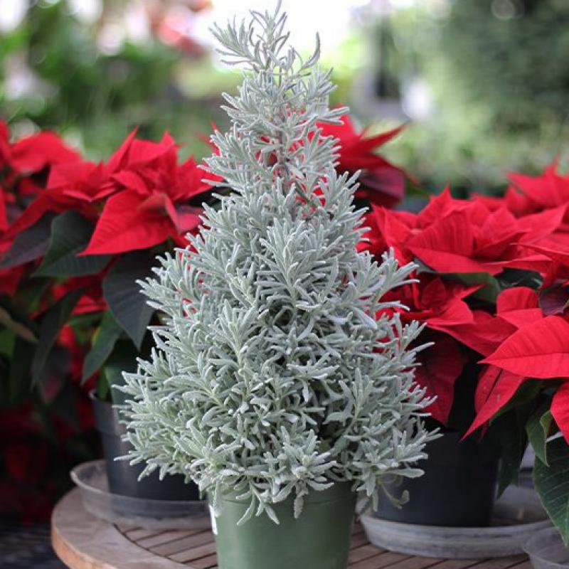 Shaped like a festive miniature tree, this fragrant lavender brings holiday charm indoors. Its silvery foliage, soft texture, and soothing scent make it a perfect seasonal accent or thoughtful gift.