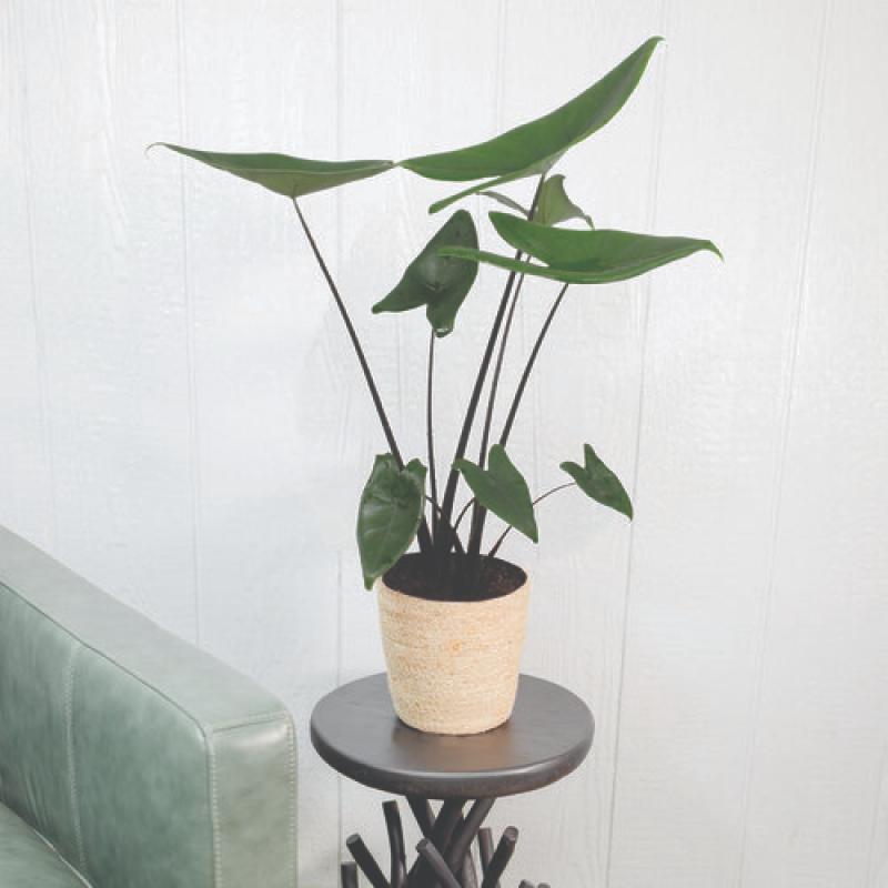 This eye-catching houseplant features deep green, arrow-shaped leaves atop nearly black stems. A bold and modern statement for bright indoor spaces.
