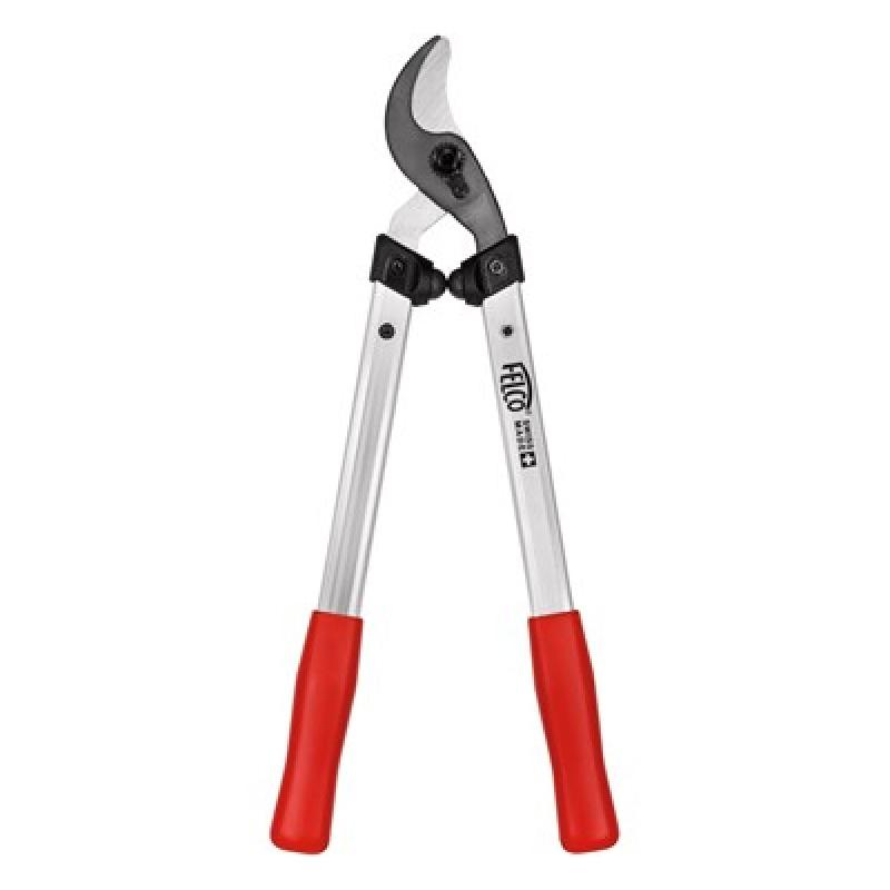 Curved cutting head with hooked counter blade. Blade and counter blade constructed of hardened steel. Screw-mounted blade and counter blade for easy replacement. Aluminum handle with robust I beam construction.