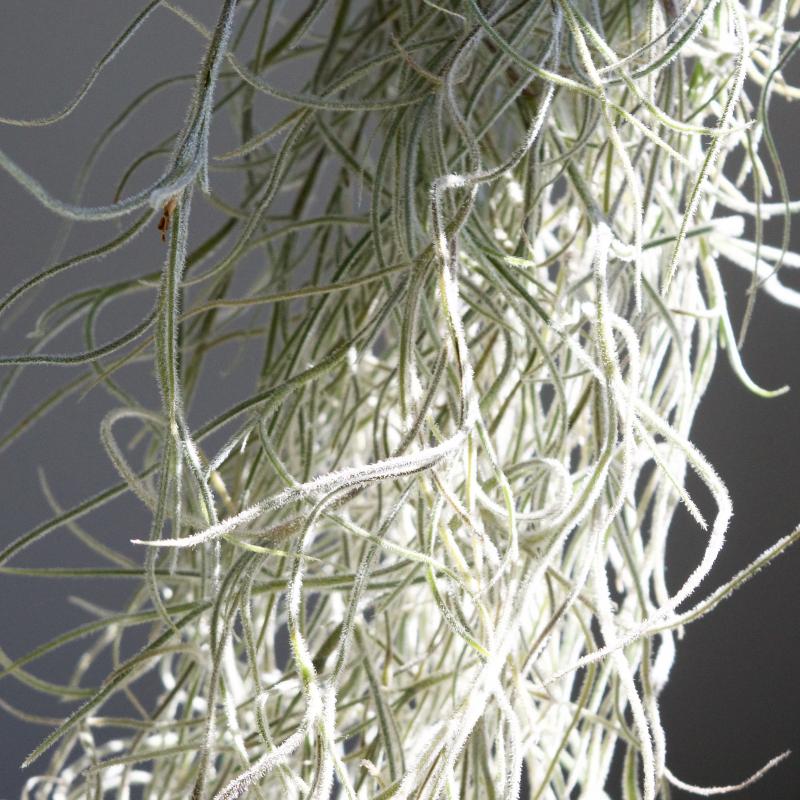 A striking air plant with cascading, thread-like leaves covered in soft silver trichomes. ‘Silver Sage’ is prized for its particularly luminous appearance and is perfect for hanging displays, terrariums, or draping from driftwood in bright, airy spaces.