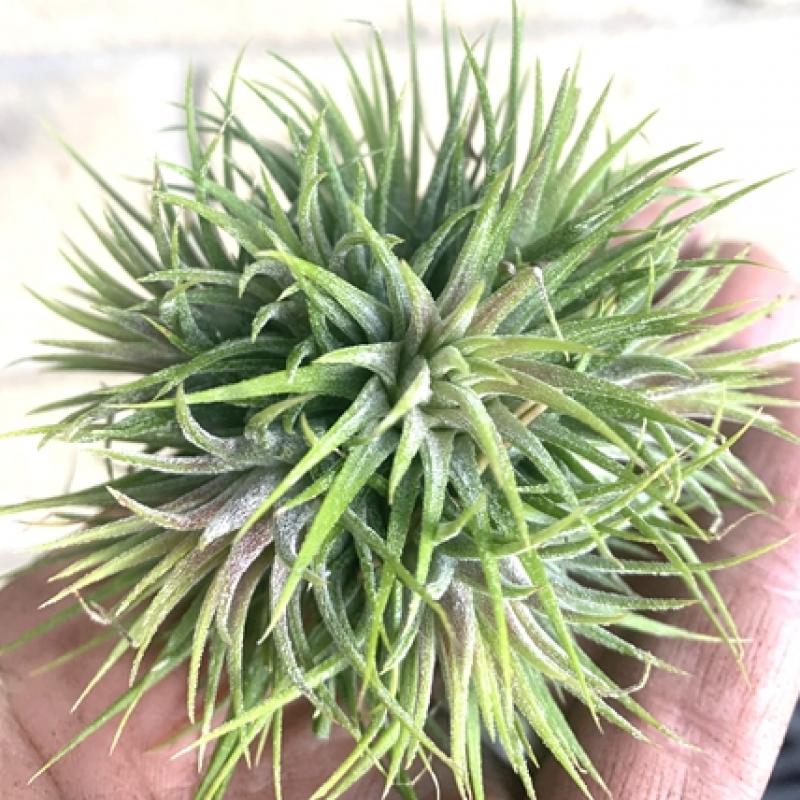 A compact and vibrant air plant with spiky green leaves that blush bright red or pink when in bloom. Produces vivid purple tubular flowers, making it a favorite for terrariums, wall art, and decorative containers.
