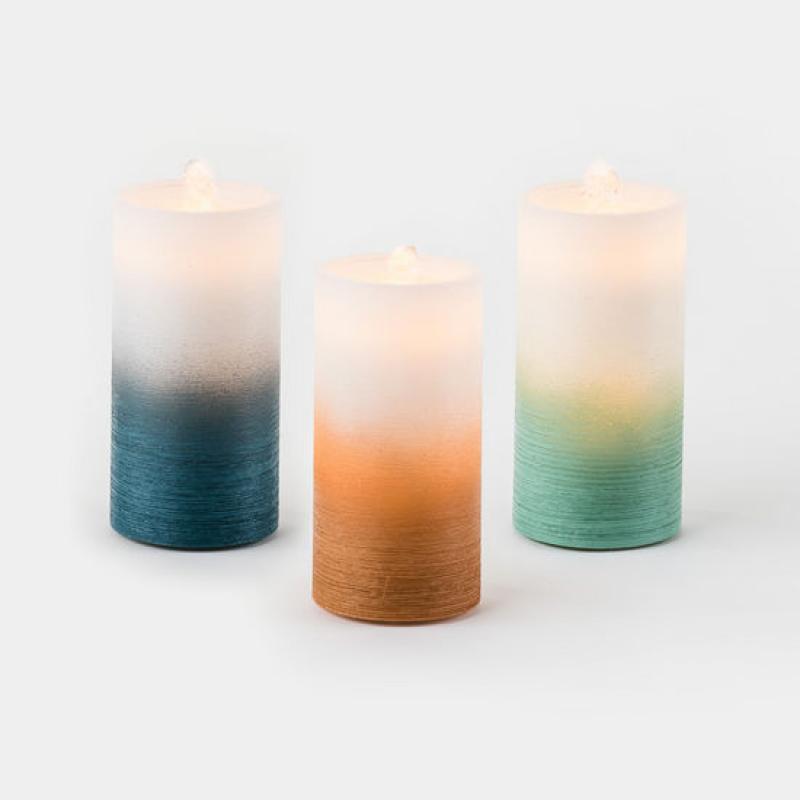 Candle - Water Wick Pillar with Remote asst ombre 3.75" x 8"