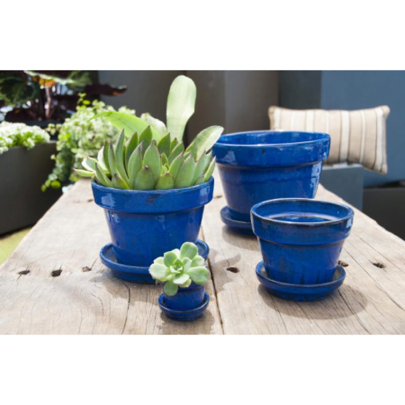 Planter - Standard with Saucer Falling Blue 8" x 6.5"
