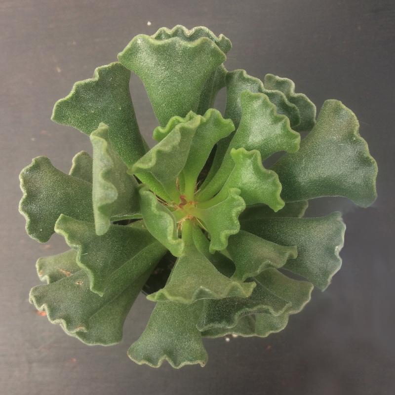 This slow growing succulent features 2" long pale green leaves covered in tiny hairs with undulating margins at the leaf tip. It will prefer growing in full sun with free draining, gritty compost.