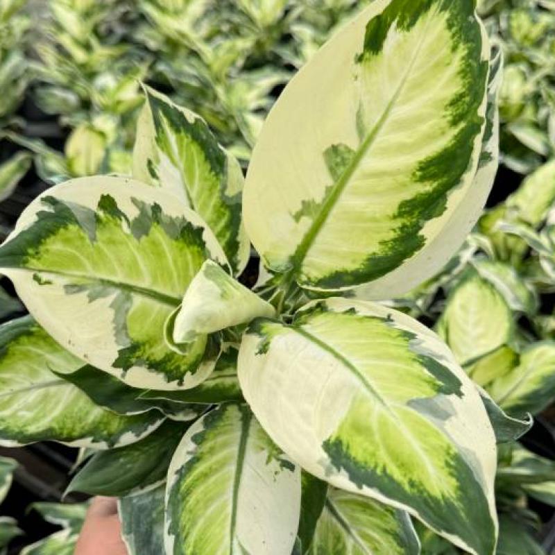 This compact cultivar features stunning variegated foliage with creamy white edges and bright green centers. ‘Cool Beauty’ is easy to grow and ideal for desktops, side tables, or grouped with other tropicals for a lush indoor look.