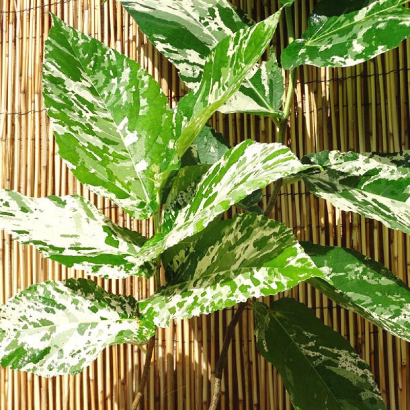 A rare and striking variegated fig with bold, marbled green-and-white leaves. This upright grower adds drama and texture to bright indoor spaces. Prune to maintain shape and size.