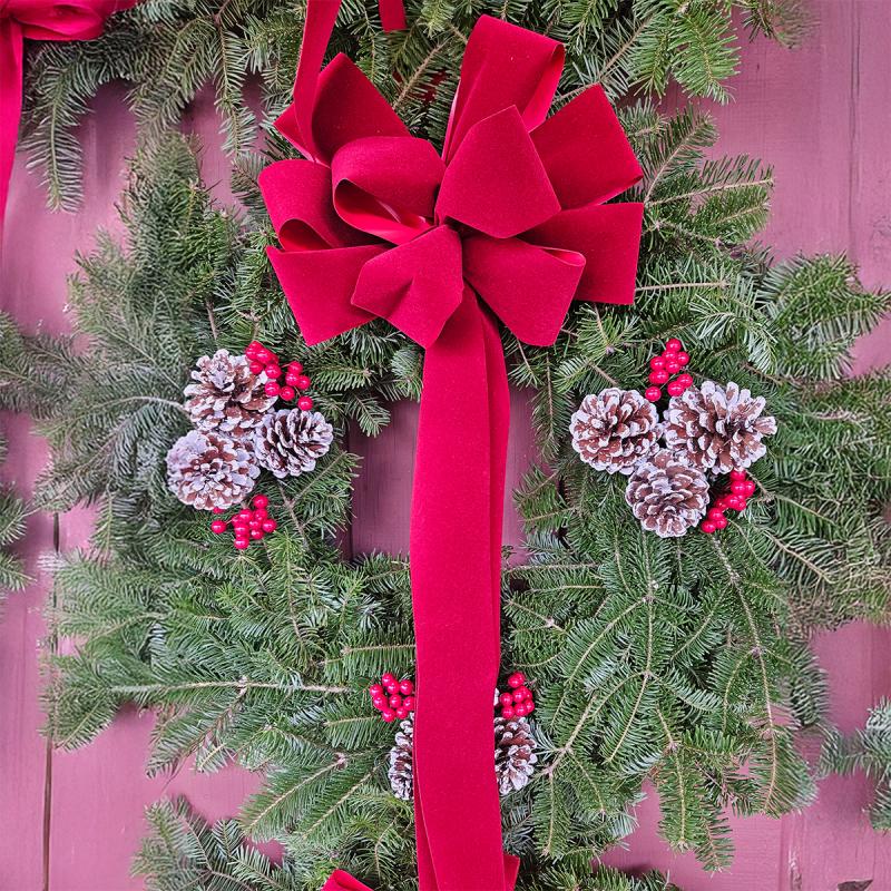 Wreath - Balsam with Bow, Cones & Berries Red Bow White Tipped Cones 24" D