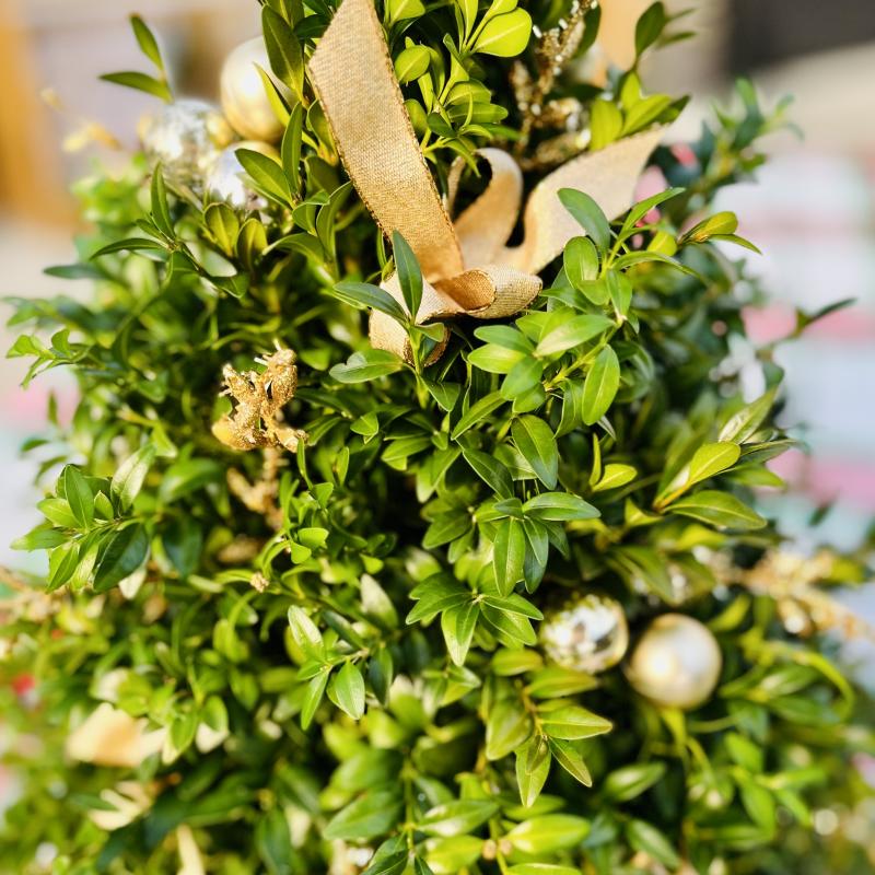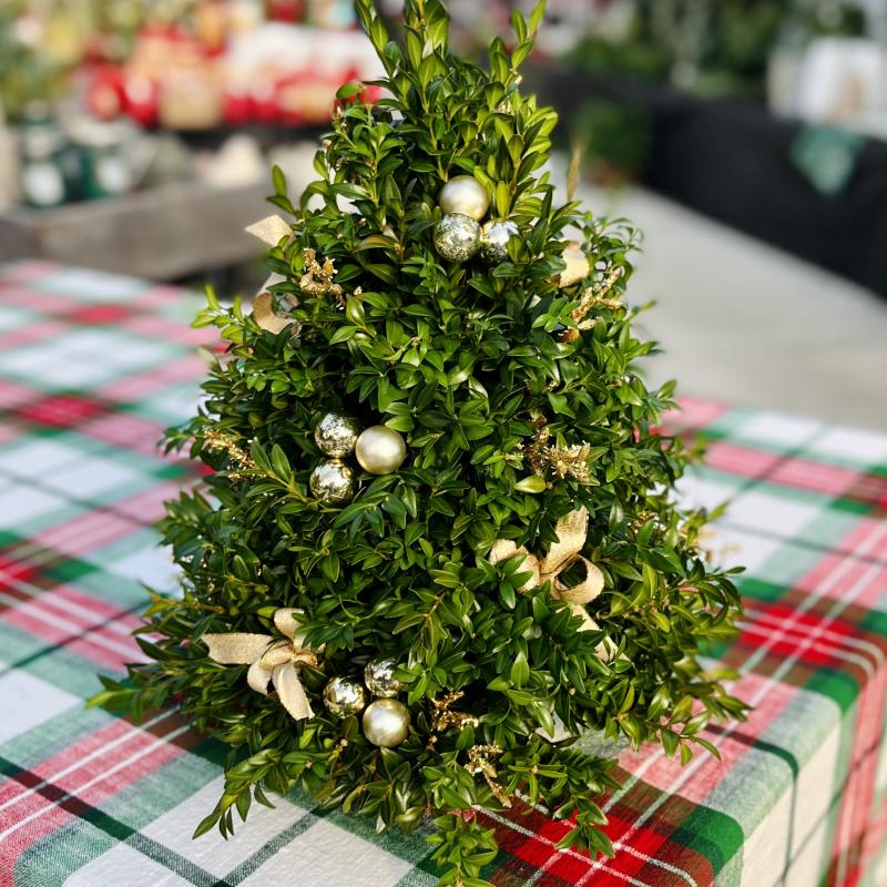 Celebrate the season with the charm and elegance of a custom made boxwood tree from Estabrook's. Choose from two different styles and two different sizes that will look great displayed on a table or as a lovely centerpiece.