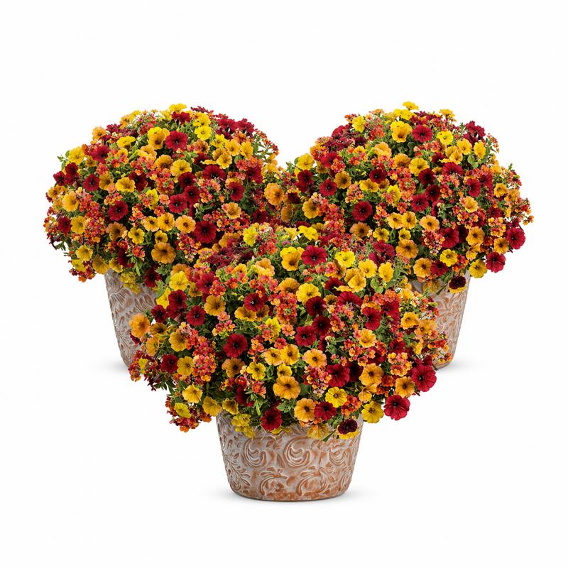 Trio of 13" Red/Orange Patio Pots