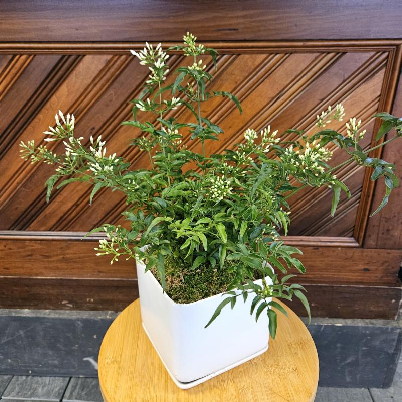 Enjoy the delicate pink blooms and enchanting fragrance of Jasmine with this classic planter.