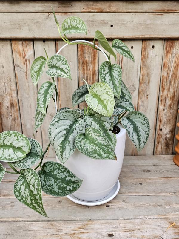 Add a playful touch to your indoor space with this gorgeous, variegated satin pothos. The trellis provides structure to allow the plant to climb to stunning geometric form!